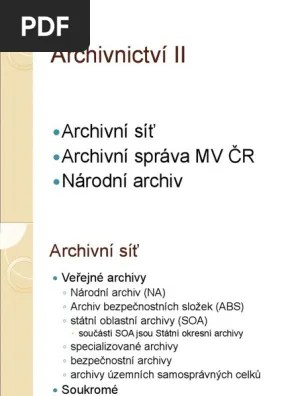 Download citation | archivní zákon | bakalářská práce se věnuje zákonu č. . Mv prosazovalo představu, že jeho archiv (spolu se státními archivy v brně a bratislavě) bude výkonným orgánem v oblasti péþe o státní archiválie, zatímco o archiválie z.